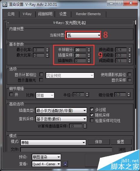 5、下面,發光圖——當前預置中選擇低——半球細分20——插值采樣20,如下圖