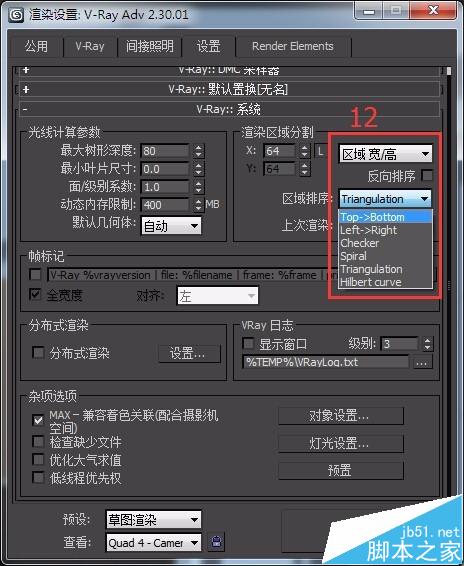 8、在下面是,渲染區域分割設置,區域排序,可以選擇從上到下、從左到右或者其他,如下圖