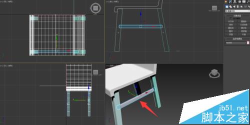 6、按照步驟3所示進行放樣生成靠背椅的前后腿,并按住shift鍵復制生成其余2條椅腿;