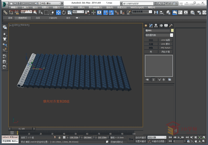 4,將做好的部分成組,在前視圖上向右復制20組,注意對齊。