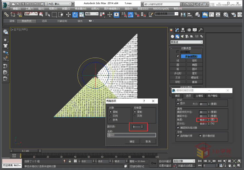 10,設置旋轉角度為90°,利用旋轉復制3個瓦片組。