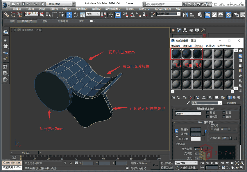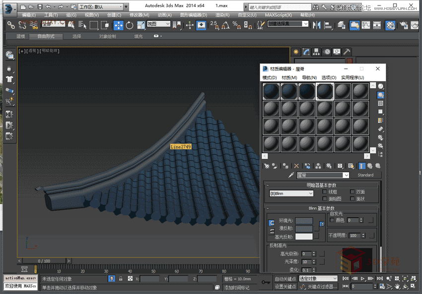 14,將屋脊轉化成可編輯多邊形,進行切角、擠出、倒角等一系列操作,完善屋脊的外形,都是基本操作,此處掠過。