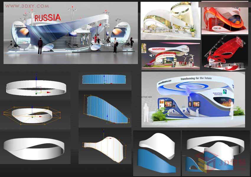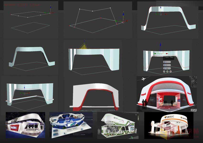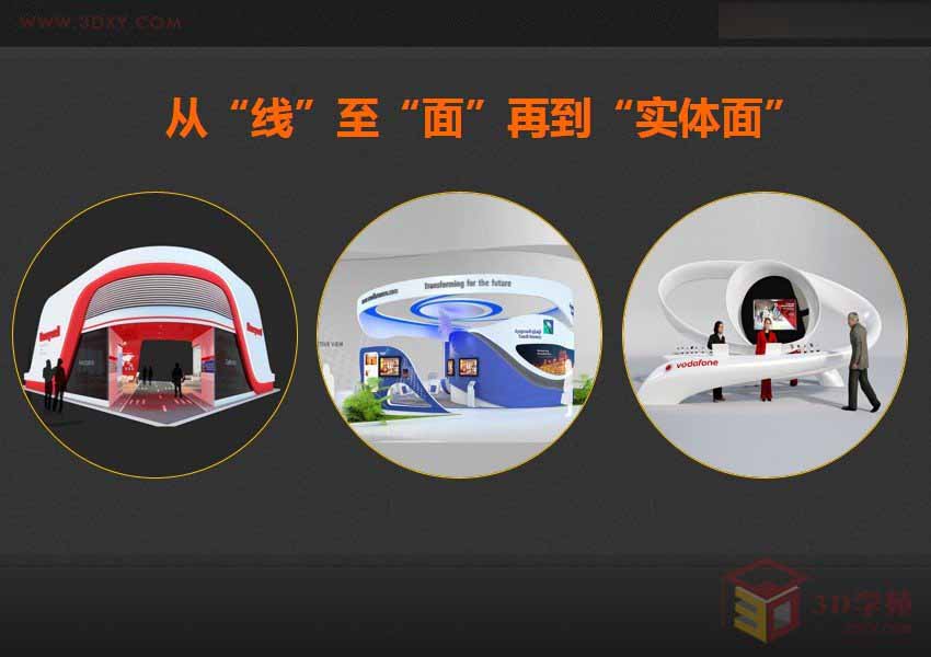 從“線”至“面”再到“實體面”的建模思路可以打造出圓形、弧形、曲面等形狀的展覽造型。