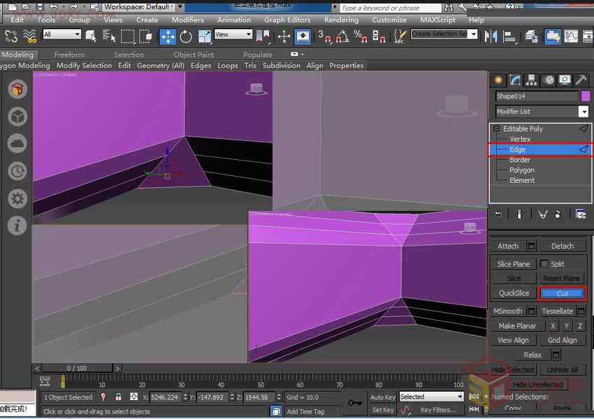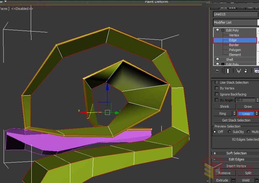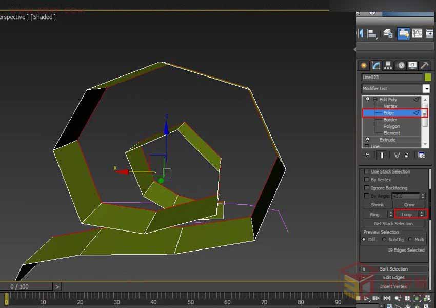 因為是同方向的并且沒有寬度的變化,我們轉化為可編輯多邊形,循環選中內部的邊線。
