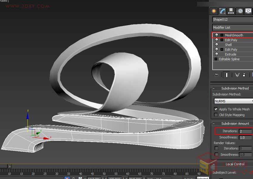 對后面的造型也添加網格平滑(meshsmooth),給出平滑值為2。