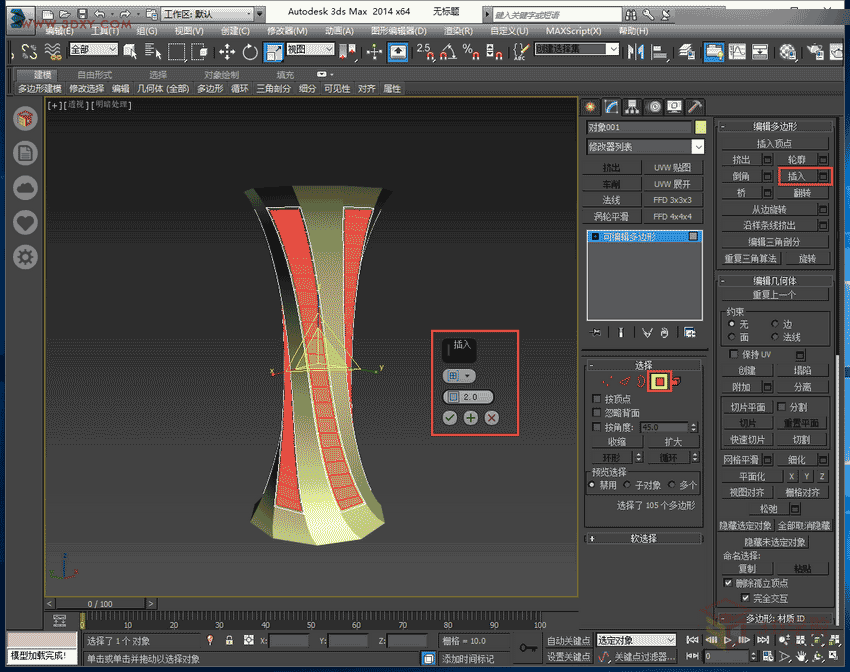 10,再次執(zhí)行插入命令,按多邊形插入1mm。進(jìn)入點(diǎn)層級(jí),選中所有點(diǎn),焊接。