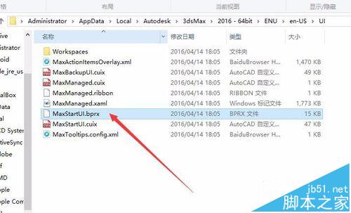 2、打開C:/Users/Administrator/AppData/Local/Autodesk/3dsMax/2016 - 64bit/ENU/en-US/UI,復(fù)制MaxStartUI.bprx把它改成MaxStartUI.mnux