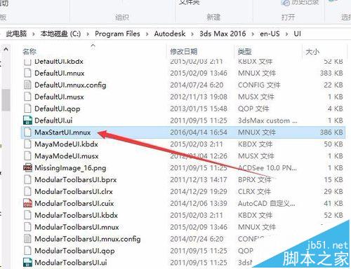 4、如果還是打不開,再打開3D的安裝文件夾,C:/Program Files/Autodesk/3ds Max 2016/en-US/UI,把MaxStartUI.mnux找到,直接冊除它,