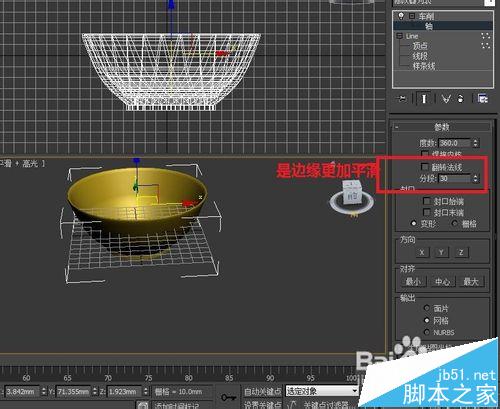 6、在右邊修改面板將分段數(shù)改為30,使碗的邊緣更加平滑。