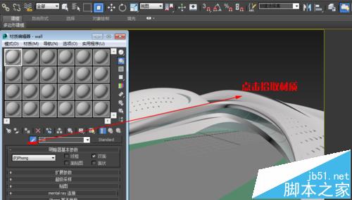 4、打開材質(zhì)編輯器(M),使用吸管工具點(diǎn)擊墻體,提取材質(zhì)。