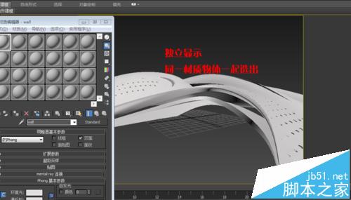 10、3Dmax導(dǎo)入模型后,使用材質(zhì)選擇,獨(dú)立顯示,可以看到,現(xiàn)在同層材質(zhì)可以一起選中了。