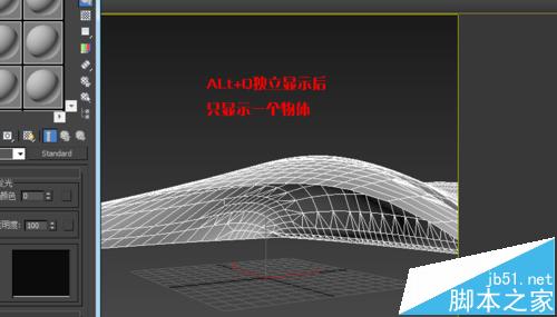 5、在材質(zhì)面板上點(diǎn)擊按材質(zhì)選擇,選擇物體,按Alt+Q獨(dú)立顯示,可以看到,在Rhino中雖然都是墻體層,材質(zhì)相同,但導(dǎo)入到3Dmax后,只能選擇一部分。