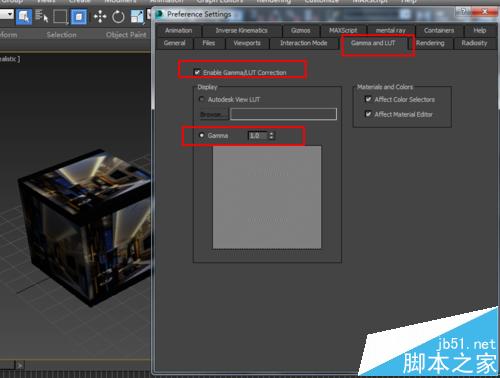 2、如果在Customize——preference——Gamma and LUT中設(shè)置Gamma,會(huì)改變整個(gè)場(chǎng)景明暗。