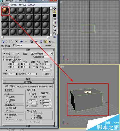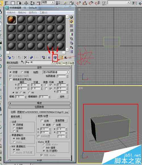 6、接著用左鍵點(diǎn)擊球體,拖拉到你選定好的模型上即可,一開始是黑色的,你需點(diǎn)擊“在視口中顯示貼圖”,那么你的貼圖才能在模型上顯示出來!