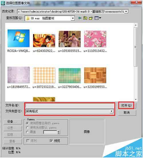 3、選擇None,進(jìn)入窗口選擇位圖,來進(jìn)行貼圖樣本索取!