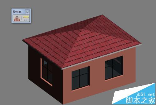 6、給房子加頂,一般房子有兩種頂,一種平頂,一種坡頂,平頂直接畫框頂下沉0.03m就可以了【圖1】,頂擠出厚度0.01m, 坡頂的話,要加蓋子【圖2】