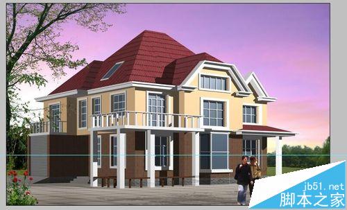 6、這時怎樣加人、車及其它,為把握好比例,簡單辦法就是拉條輔助線,Ctrl+R出現(xiàn)標尺,鼠標放入標尺橫欄向下拖入適當位置,如圖。