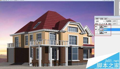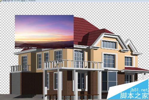 5、這時就可以加天空了,調出天空的圖片直接點擊拖進去如圖,Ctrl+T調整大小,拖入下層。