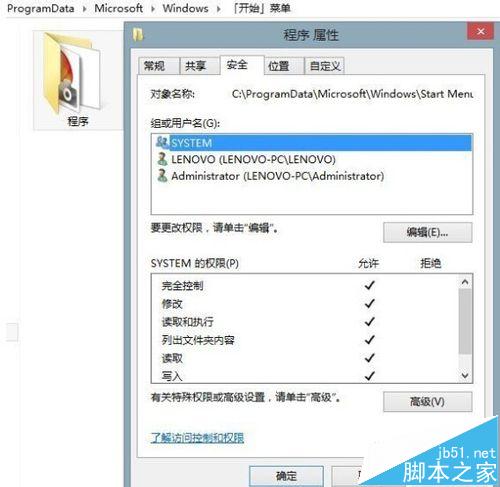 2、右擊Programs-->屬性,切換到“安全”標簽;