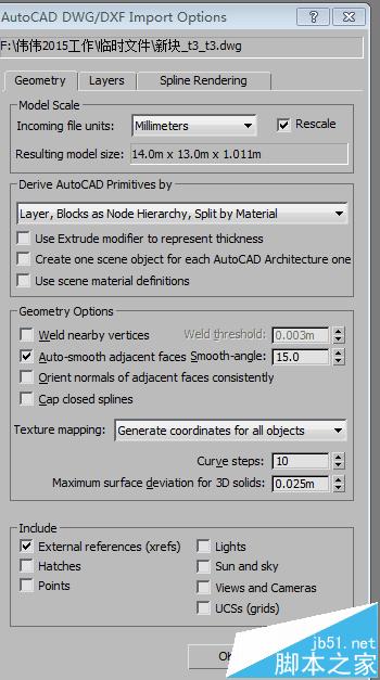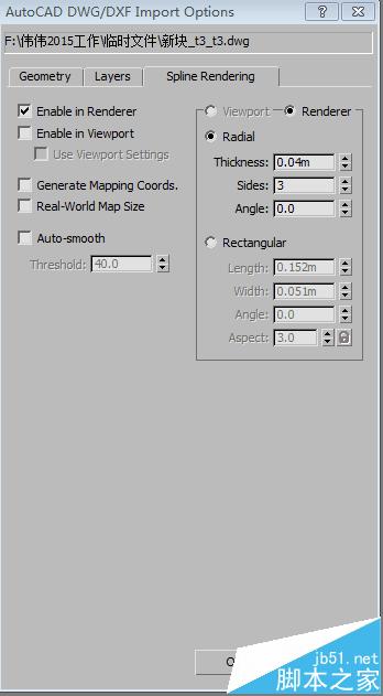 7、重點【勾選Rescale】選擇單位—Spline rendering下面只打上面一個勾就可以了,否則渲染慢注意,Thickness粗細大小我調的是0.04毫米,—ok