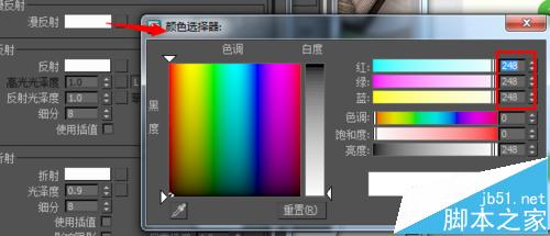 漫反射:漫反射在玻璃材質中的表現是不起作用的,這里一般給個接近白色就行。