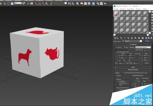 19、把這張圖存出去,jpg就行,然后返回3Dmax,把那張圖作為材質貼圖,賦予給模型,效果如圖所示,這樣我們就可以很方便的編輯每個面的材質圖案了。