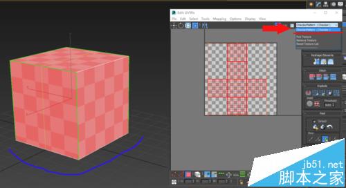 11、如圖,紅色箭頭所指的選項,功能是讓模型“呈現出方格像素塊”,每一個面像素快越多,它展現貼圖就會越精細,反之越少就會越模糊。假如出現像素格拉伸成長方形的情況,我們要手動(縮放)uv使之維持正方形,不然貼出的貼圖也會出現拉伸。(注:如何縮放,參考第10條)