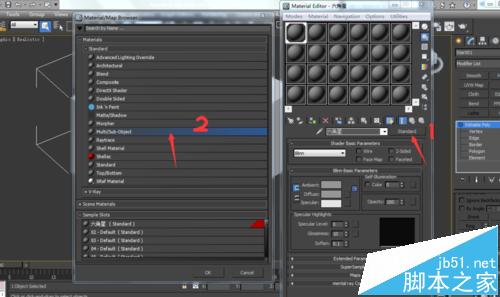 5、點擊標準材質通道找到mutil/sub-object多維子材質雙擊選中,彈出小面板框,按照默認的選擇點擊ok即可。