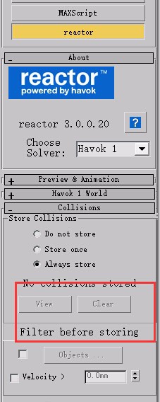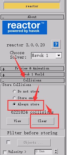 3、選擇reactor中的collisions,選擇always store,點擊下面clear(刪除的意思),系統會處理一下