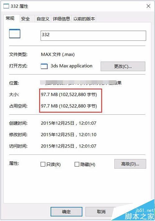 5、把文件另存為一下,屬性對比一下是不是減小了呢。這樣文件就正常了。