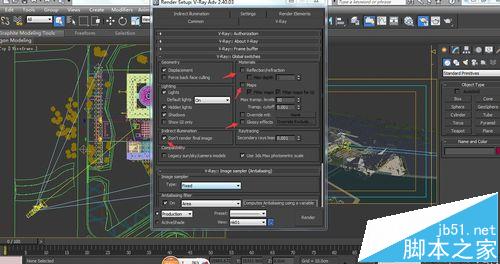 6、找到V-Ray面板下的全局開關Global Switches,將反射、貼圖、影響模糊的勾去掉,因為光子圖不需要這些,這些會影響運行速度。再將不渲染最終圖像打上勾。