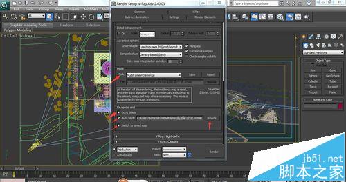 10、在燈光緩存中Light cache下更改細分值,一般經驗值為1200與1500,再勾上如圖所示右邊的第二個勾,下面mode與On render end的設置與第九步相同。