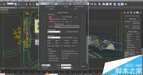 4、首先找到公共面板common中公共參數common parameters的時間輸出time output,根據自己的需要設置時間的長度,注意一點就是如果是動畫就選擇動畫或者序列圖即第二與第三個選項,如果是效果圖就選擇第一個選項單幀single 。我主要以單幀效果來作例子。