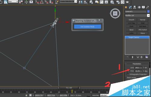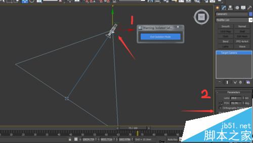 3、選中相機機身(是機身即機頭而不是目標點),找到相機修改面板參數。