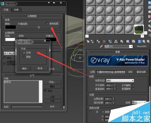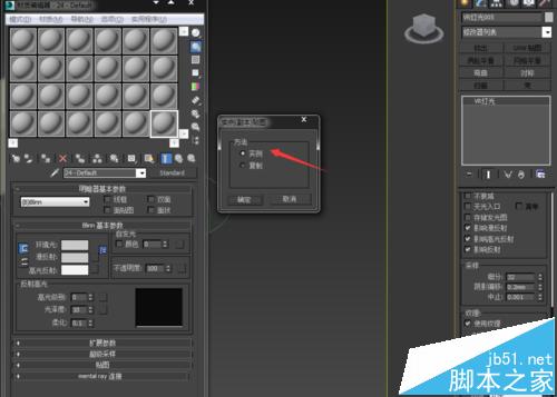 3、添加貼圖后,M打開材質面板,將VRHDRI貼圖拖到材質球上,按實例模式。