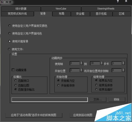 6、在視口的+號點擊,打開配置視口。在背景選項卡,改為使用環境背景。這樣使用的HDRI貼圖就可以看到了,可以作為效果圖背景。