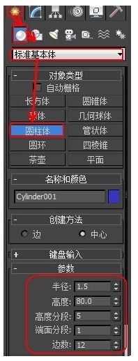 2、單擊“創建”-“幾何體”-“標準基本體”-“圓柱體”按鈕,在“頂”視圖創建一個切角圓柱體,設置參數如圖所示。