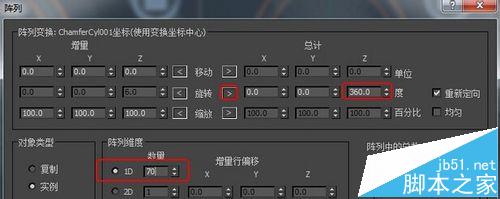 9、確認視圖中的線形為選擇狀態,選擇3DsMax2013菜單欄:“工具”-“陣列”命令,在彈出的“陣列”對話框中設置陣列參數,單擊“確定”按鈕,如圖所示。