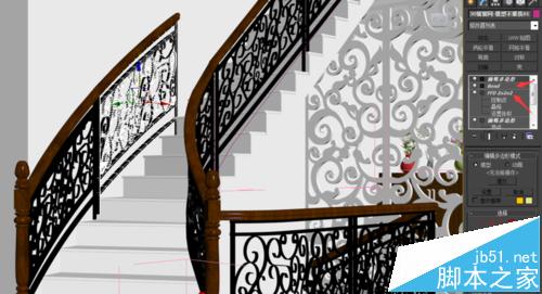 6、其他的扶手樓梯,先使用FFD拉出大體造型,再使用彎曲,做法一樣。