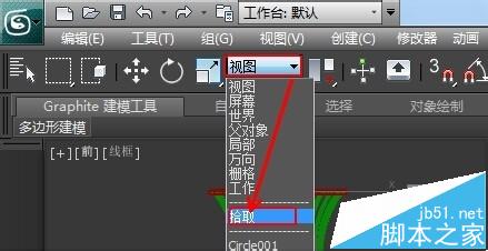 3、確保繪制的線形處于選擇狀態(tài),在3DsMax2013工具欄“視圖”下方選擇“拾取”,如圖所示。