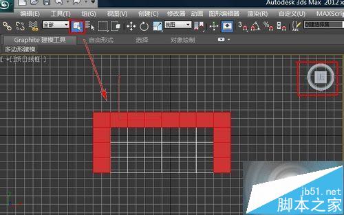 9、單擊“選擇對(duì)象”,在上視圖里按住“Ctrl+選擇對(duì)象”,選中頂層這圈表面,不要使用框選,因?yàn)橹贿x中立方做上表面這一圈。