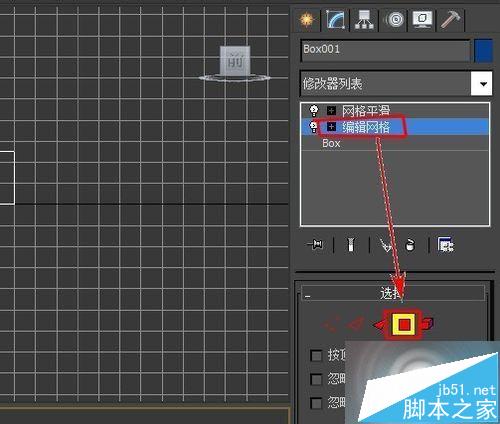 8、“編輯網(wǎng)絡(luò)”要加在“Box”與“網(wǎng)絡(luò)平滑”之間,選擇“編輯網(wǎng)格”,在下面選擇面板里單擊“多邊形”。