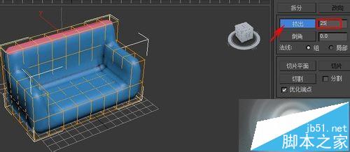 13、回到命令面板里,在“編輯幾何體”中單擊“擠出”,設(shè)置擠出值為“25”。