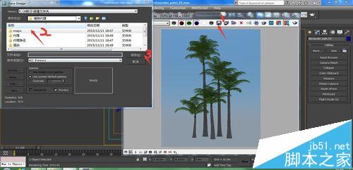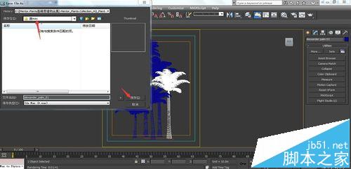 4、將默認(rèn)渲染器切換為V-Ray渲染器,渲染場景中的植物,將渲染圖片保存為JPEG格式到新建的文件夾渲染中,這樣利于以后調(diào)用代理時候作查找參考。