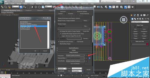 2、按快捷鍵F10或者是菜單欄渲染rendering中第二項render setup找到渲染設置面板,去到公共參數common中最下面Assign Renderer下,將默認渲染器改為V-Ray渲染器。