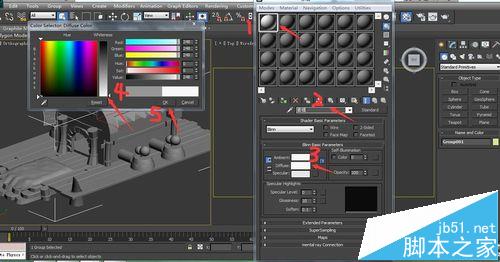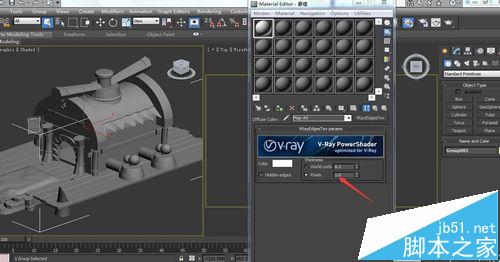 9、點擊VRayEdgesTes面板下的顏色,將顏色改為灰色,因為這是線框顯示的顏色,白色和灰色好友對比。雙擊材質球,可以看到明顯的深灰色線框。