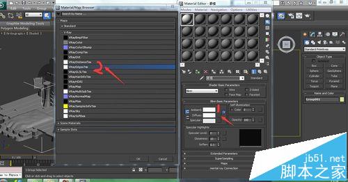 6、點擊漫反射diffuse后的小方框,找到V-Ray材質中的線框材質VRayEdgesTes雙擊,可以看到右邊standard處變為了VRayEdgesTes,彈出來一個新面板。