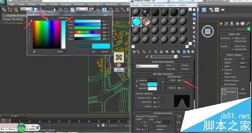 6、回到材質球下面的標準standard材質面板,將自發光self-illumination改到100,不用勾前面的勾。然后點擊固有色diffuse即中間顏色條,出現一個顏色color select面板,將所有的的小三角形都拖到頂,這樣顏色更亮在通道中更容易選出來,然后點擊ok。其他材質也用一樣的方法設置。