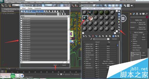 5、隨便選中一有材質的材質球,找到材質球右下角的按材質選擇select by material,彈出一個選擇物體面板,直接點選擇select即可。
