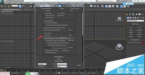 2、找到下面渲染輸出render output選項,在保存路徑save file處找到保存路徑,保存格式為tga格式,點擊ok,只要找好存放位置save file處的勾自動會勾上。